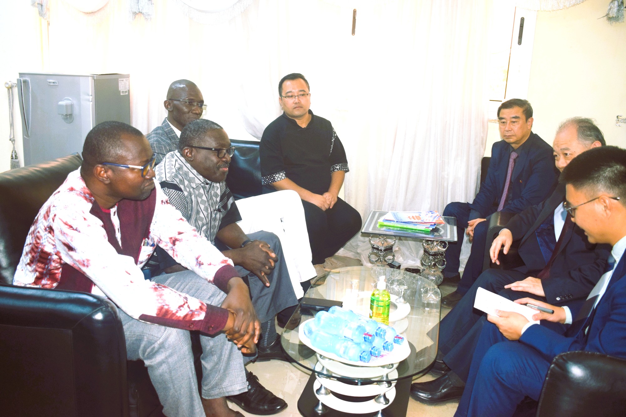 Le Président de l’UNB, Pr Hassan Bismarck NACRO, entouré de ses collaborateurs ont conduit des échanges fructueux avec S.E. Deyong SHAO et sa délégation. Il faut noter que les échanges ont porté sur des points de coopération déjà existants et se sont orientés également vers des perspectives. En effet, Pr Hassan Bismarck NACRO et S.E. Deyong ZHAO ont parlé du l’Institut Confucius dont les activités d’enseignement de la Langue Mandarin et de la culture chinoise connaissent une véritable croissance, en termes d’étudiants inscrits. Ils ont abordé aussi la perspective d’ouvrir l’apprentissage du Mandarin au public externe, notamment aux acteurs économiques qui entretiennent des relations commerciales avec la République Populaire de Chine et pour qui la maîtrise de la langue chinoise enseignée à l’Institut Confucius de l’UNB serait un véritable outil de travail pour eux.
