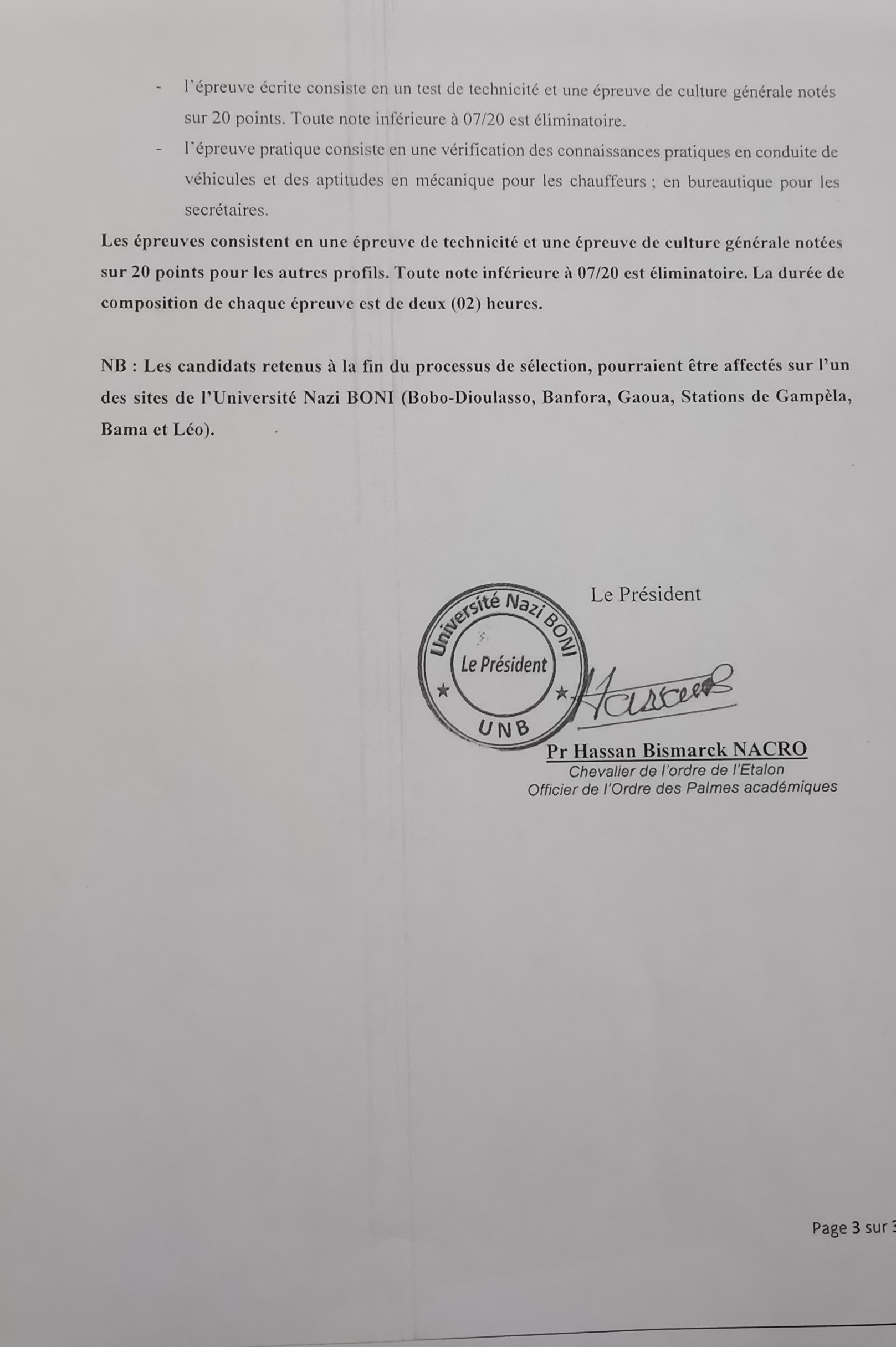 Communiqué du Président de l'UNB portant "Bourses de l'Ambassade de la République Populaire de Chine au Burkina Faso