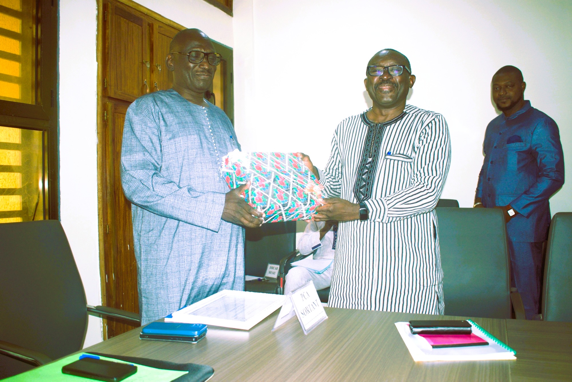 Nommé en conseil des Ministres du 04 décembre 2025, Pr K. Landry Guy YAMEOGO succède au Pr Jean Célestin KY dans les fonctions du Président du Conseil d’Administration de l’UNB. Avant de passer le témoin à son successeur, Pr Jean Célestin KY a tenu à remercier ses supérieurs hiérarchiques qui l’ont nommé dans la fonction du PCA de l’UNB. Ainsi, il a témoigné sa reconnaissance au Pr Frédéric OUATTARA qui la nomination et au Pr Adjima THIOMBIANO pour la reconduction. Il a également remercié les membres du CA, notamment le Président de l’UNB, Pr Hassan Bismarck NACRO, pour leur fructueuse collaboration ayant conduit l’UNB à des résultats probants. A titre illustratif, ils sont parvenus à résorber en grande partie les retards académiques ainsi que le retard dans le paiement des actes académiques. Passant le témoin à son successeur, Pr K. Landry GUY, nouveau PCA de l’UNB, il l’a félicité pour sa nomination. Il lui a signifié que selon Pr Adjima THIOMBIANO, le MESRI, le PCA est tenu pour responsable de tous les dysfonctionnements de l’institution ; il devra alors, avec tous les acteurs, aller à l’identification des problèmes à résoudre afin de conduire l’UNB à réussir sa mission.