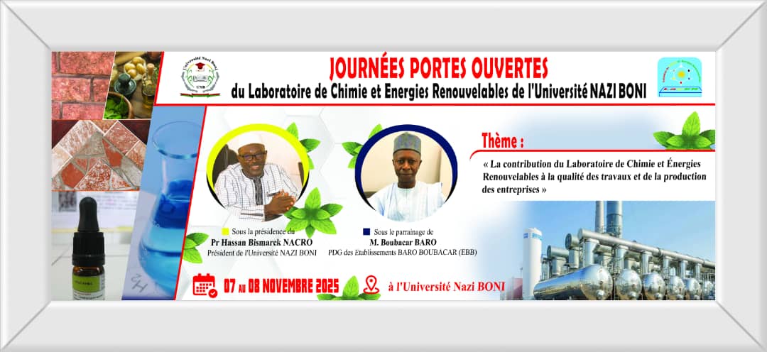 Journées porte-ouverte du Laboratoire de Chimie et Energies Renouvelables (LAaCER), de l'Ecole doctorale Sciences et Techniques de l''Université Nazi BONI